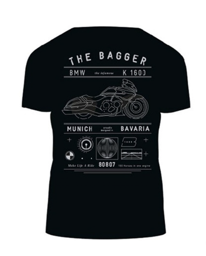 T-shirt med klassisk rund hals, lavet af 100% single jersey bomuld. Stort motivtryk med "THE BAGGER" på bagsiden samt et lille motiv på venstre bryst.