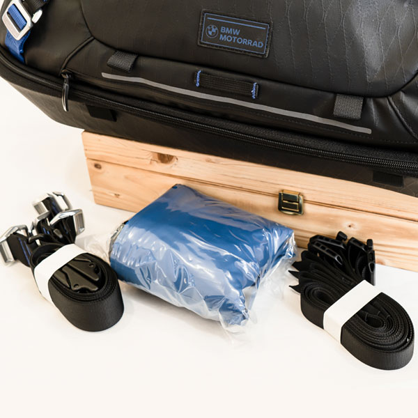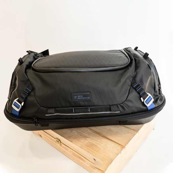 Der findes mange forskellige tasker til motorcykler på markedet, men ikke alle tasker passer i farve eller finish. Det er dog med én undtagelse. BMW har lanceret ”The Black Collection” og det er BMW Rear Bag i large en del af. Tasken kan monteres på bagenden af cyklen ved hjælp af stropper.