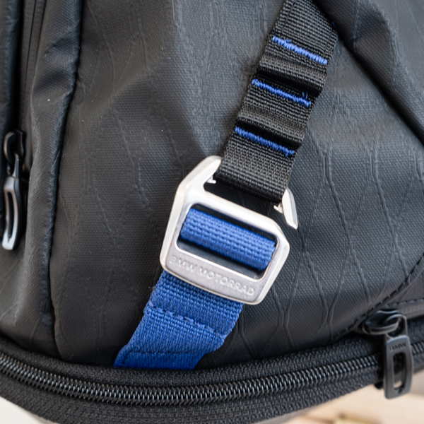 Sort, sort, sort og fede blå detaljer og sølvspænder. Ja, opgaven hører ikke til BMWs ”Black Collection” uden grund. Materialet som opgaven er lavet af udvendig, er det praktiske vandtætte TPU og der medfølger desuden en inder opgave som kan tages ud derfra som desuden også er vandtæt. Indvendig har BMW Rear Bag en matchende blå farve som ses udenpå.