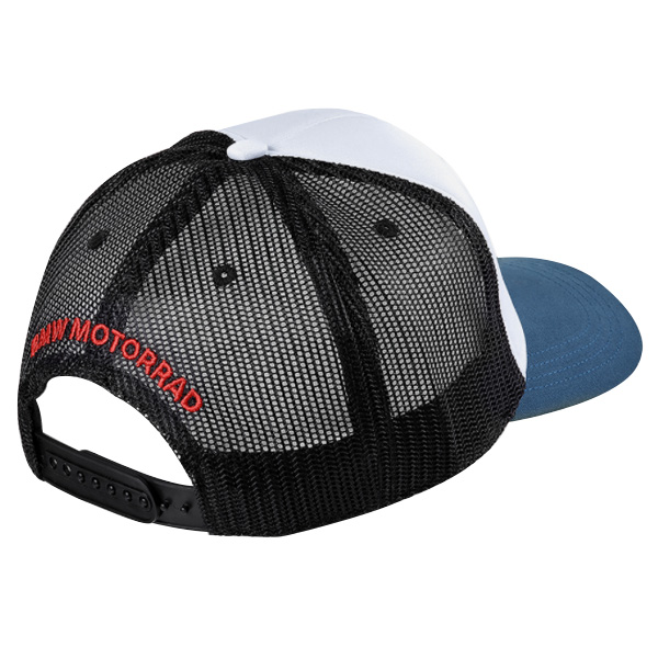 BMW Børne Cap. Hvid med blå og orange skygge, samt sort net.