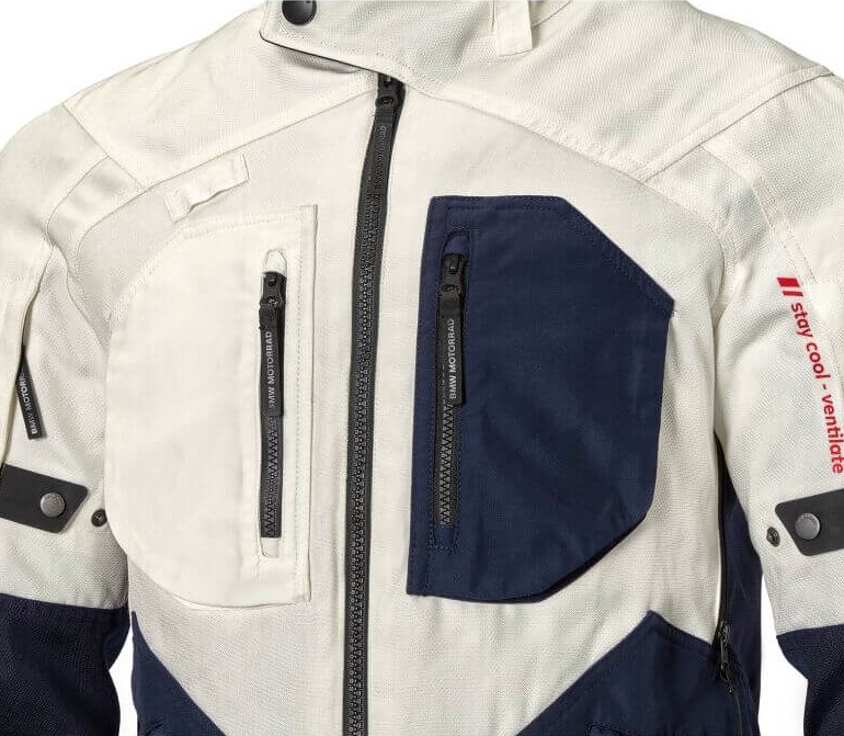Man er ikke gået på kompromis med sikkerheden, jakken er produceret i et meget slidstærkt polyamid-bomuldsmateriale, der giver maksimal beskyttelse i tilfælde af fald. BMW GS Rallye GTX jakke har NP3 beskyttelse på albuer og skuldre, samt en lang NP Pro rygbeskytter.