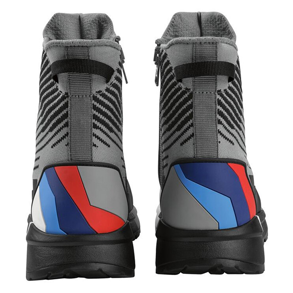 Moderne design ved hjælp af materiale egnet til motorcykler: KnitRace sneakers imponerer med luftig 3D strikteknologi. Takket være gearstangsbeskyttelse, integreret ankelbeskyttelse og 3D hælbeskyttere er disse sneakers certificeret som motorcykelsko (niveau 1). Visuelt highlight: M farveprint på hælen.