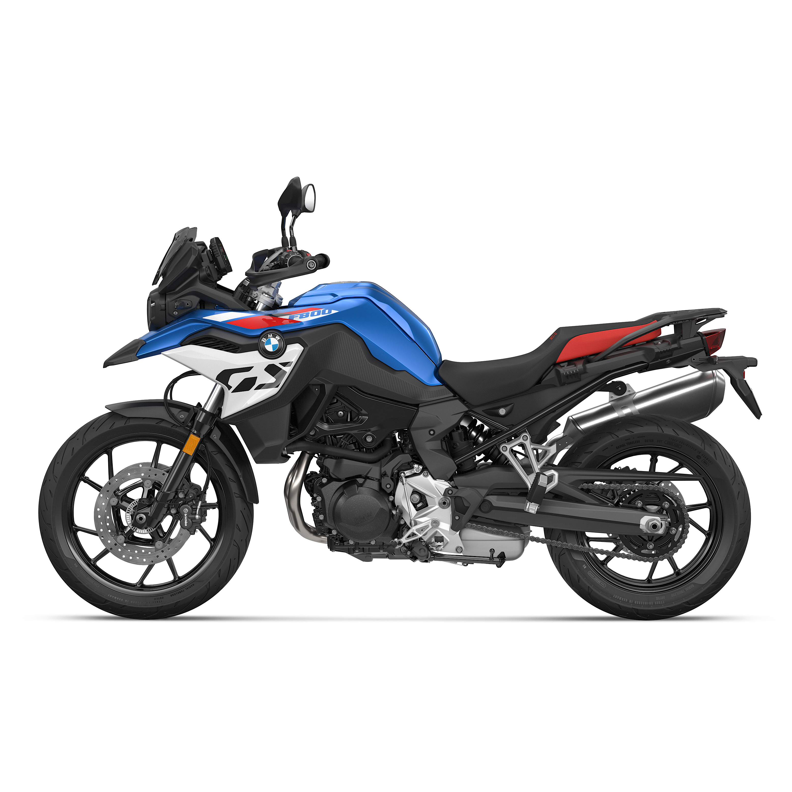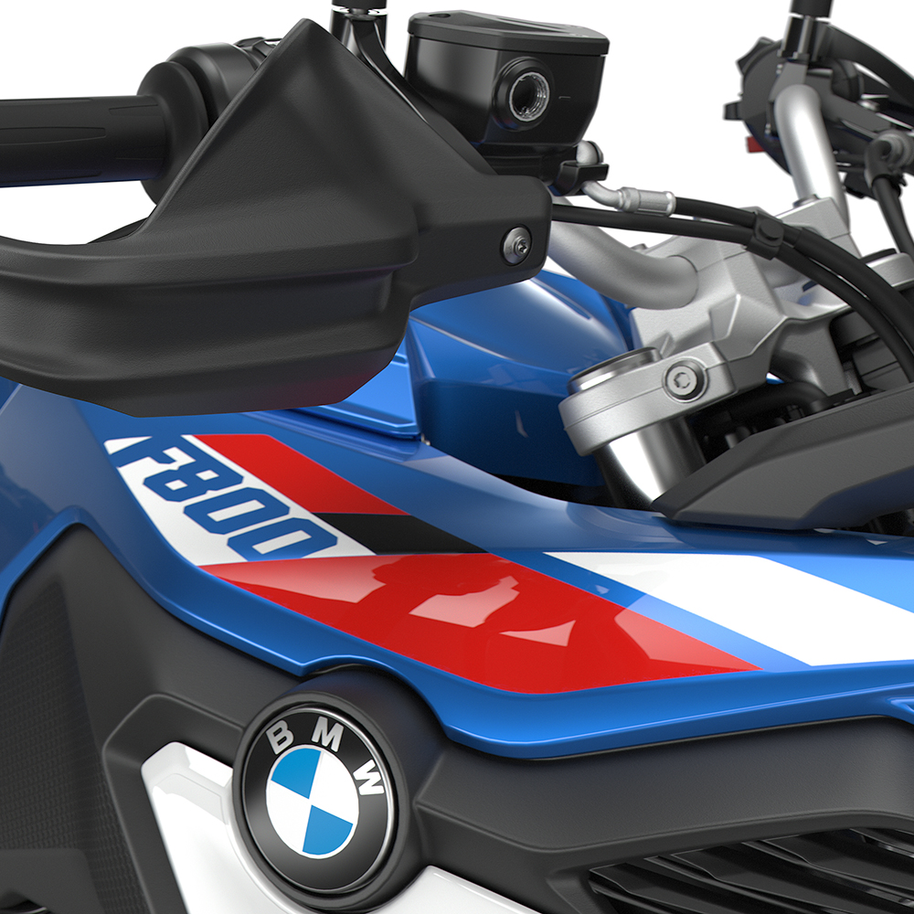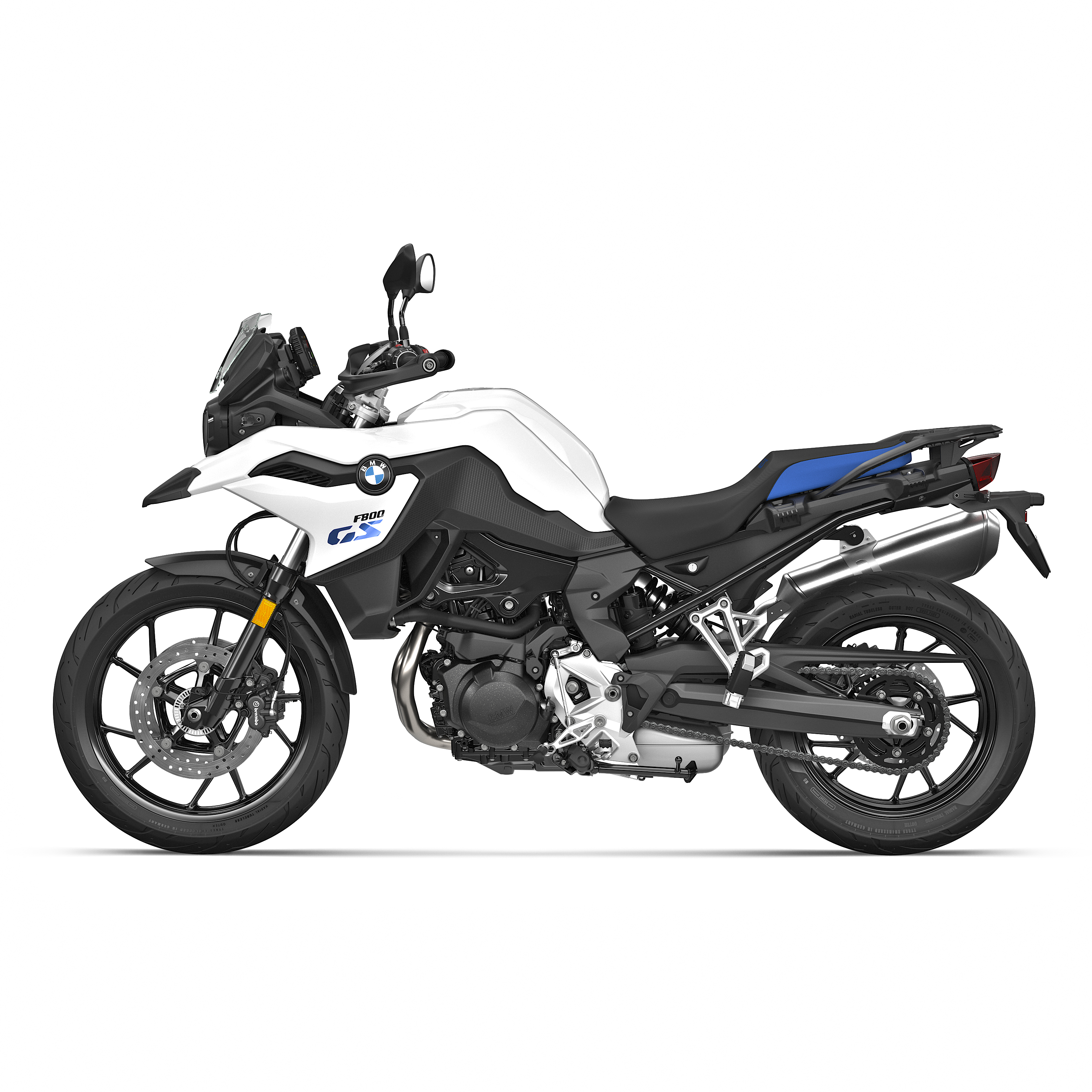 F 800 GS er udtryk for ubesværethed og dynamik. Dette skyldes hovedsageligt dets lyse trimpanel i hvid lakering og dets slående sort-blå sæde med GS-broderi og sort styr.