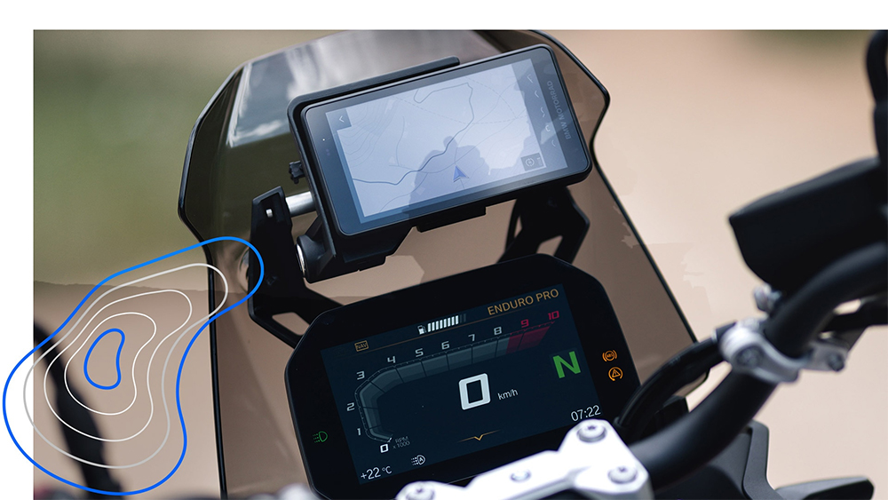 Med ConnectedRide Navigator har du alle vigtige køretøjs- og trafikoplysninger på et øjeblik, mens du kører. Regelmæssige kortopdateringer sikrer, at du når alle destinationer. Den robuste hardware kan klare næsten alt. Med BMW Motorrad Connected-appen kan du også integrere din smartphone og dens funktioner.