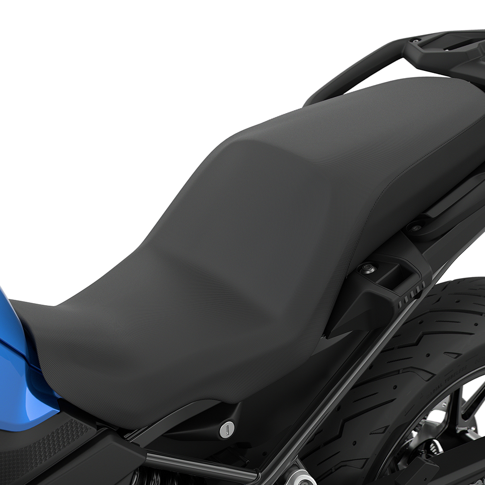 Blackstorm metallic understreger cyklens konturer og matcher perfekt F 800 GS Triple Blacks eventyrlyst. Kølerkapperne i mineralgrå metallic mat og sædet i sort/grå, inklusive GS-broderi understreger looket.