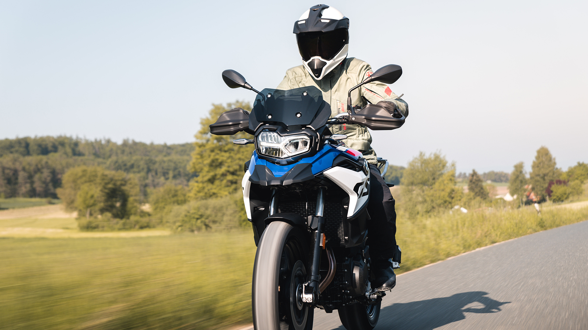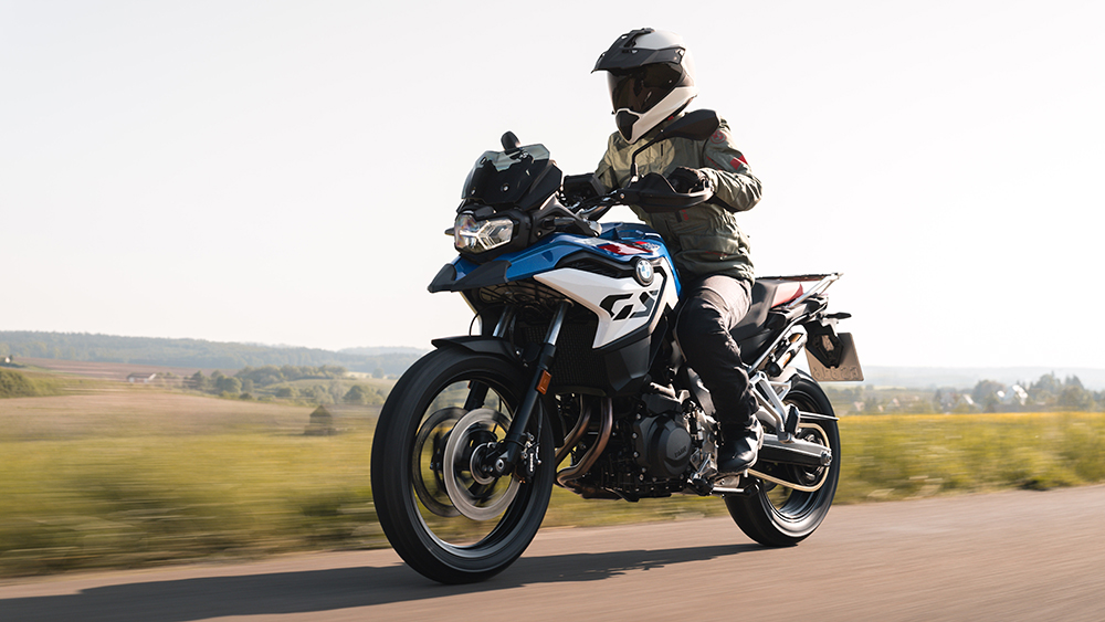 Sporty hele vejen igennem: F 800 GS Sport i Racing blå metallic farve er en dynamisk variant. Sædet i sort/rødt med "GS" broderi giver en flot kontrast til de lyse radiatorkapper i hvid og sølvstyret.