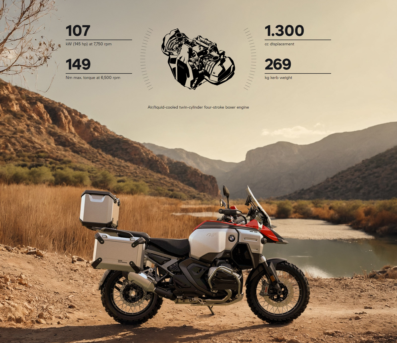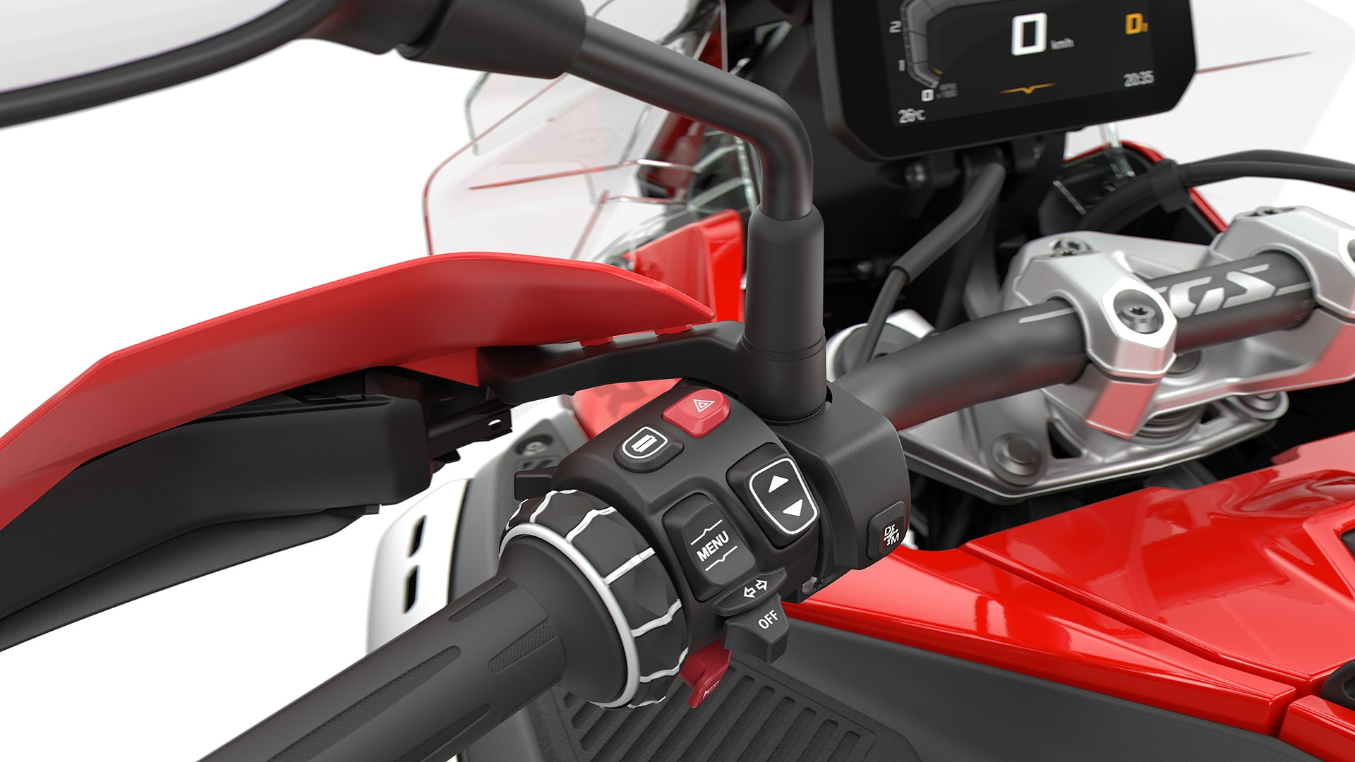 Designet til eventyr; fra den sølvfarvede brændstoftank, helt op til det sort/røde sæde. Suppleret med håndbeskyttere, som også er i rødt, og det sorte styr og hjulfælge, er denne variant en rigtig hovedvender.