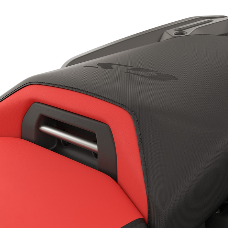 Den sporty karakter kan ses i alle aspekter, fra Racing Blue metallisk farve, helt ned til båndene i Light White og Racing Red. Det høje, sort/røde førersæde suppleres af håndbeskyttere, som også er i rødt.