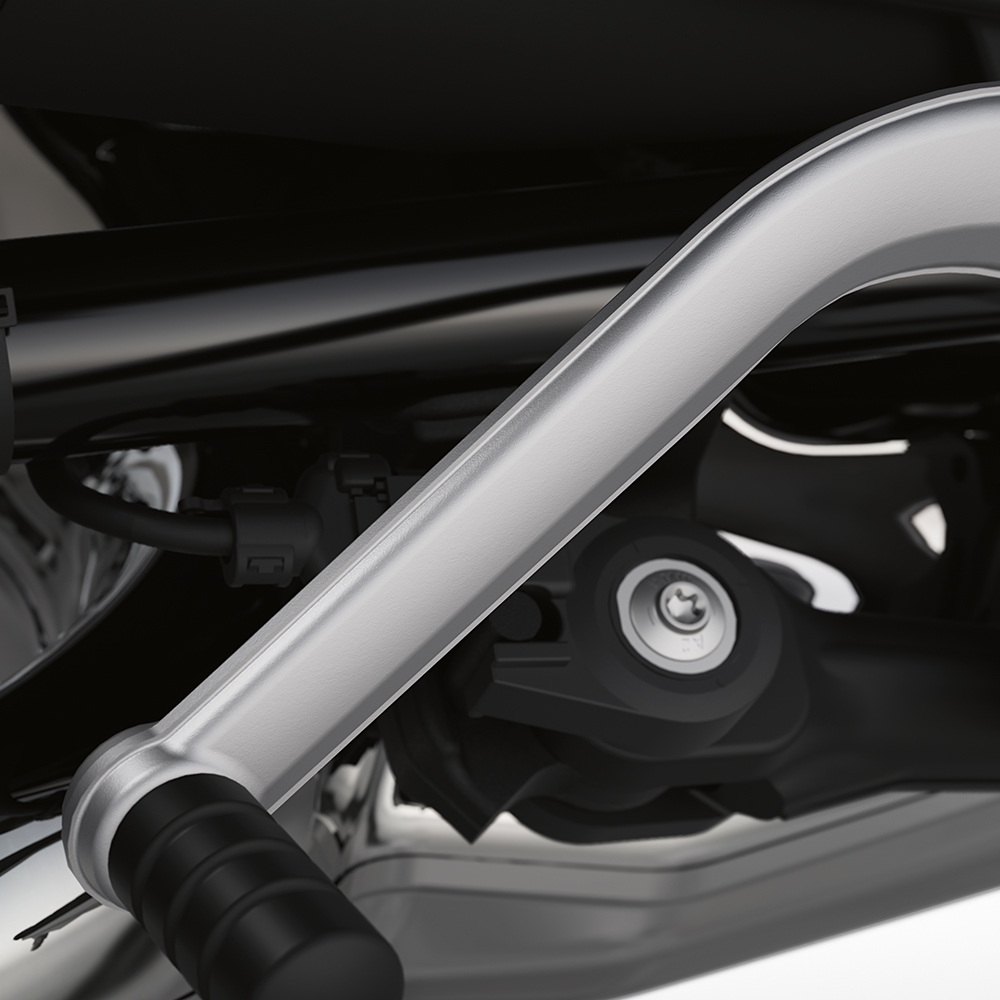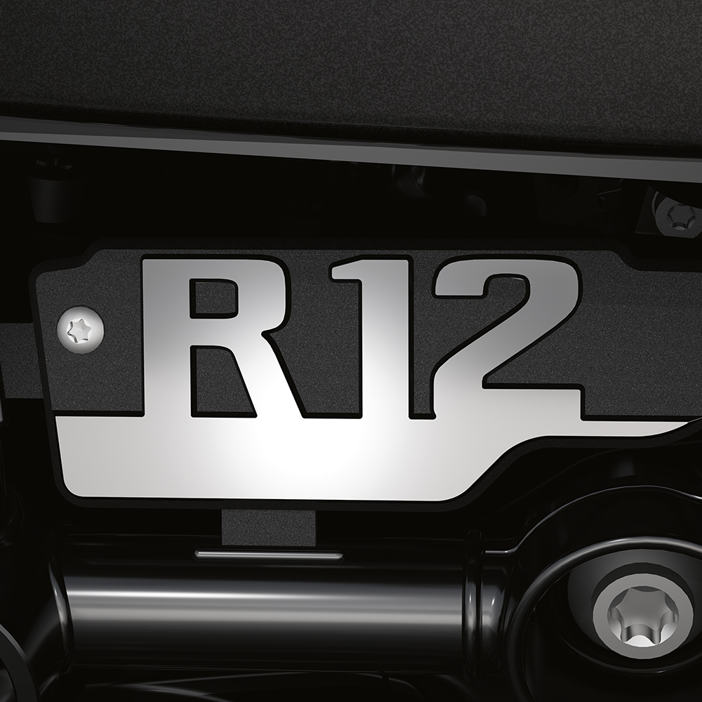 Med det legendariske drev og køretilstandene ROLL og ROCK kan du skifte fra seriøst tilbagelænet til dynamisk, når du har lyst. Denne boxermotor, der er optimeret til den tilpassede cruiser, leverer et rigt drejningsmoment og fin acceleration på vejen ved lave omdrejninger. ROLL-køretilstanden er optimeret til en afbalanceret cruiser-følelse. ROCK-køretilstanden giver dig lyst til at jage sving dynamisk med optimal stabilitet. Som et særligt højdepunkt bevæger R 12 sig lidt mere rocket i tomgang.