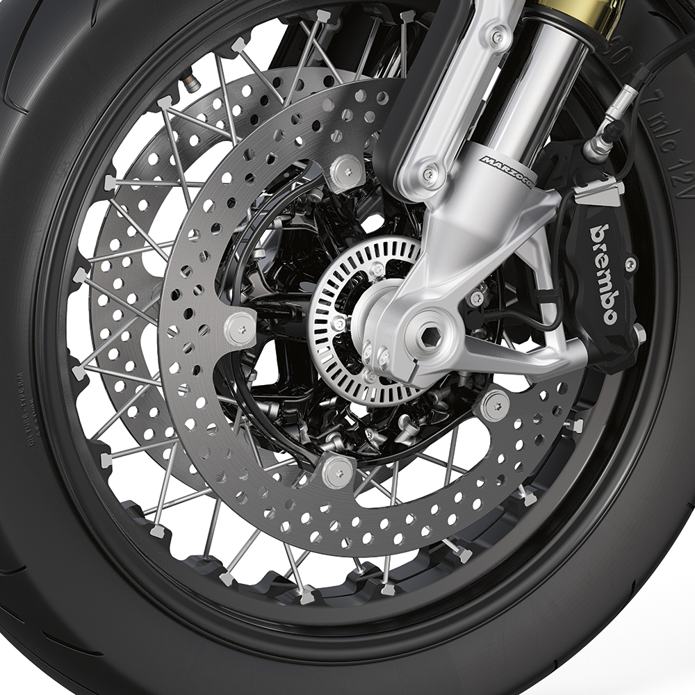 Hvor end den kører, er R 12 nineT straks i centrum. Den gyldne upside-down forgaffel, adskillige aluminiumsdele, de to runde instrumenter – hver detalje giver en uforglemmelig præsentation.