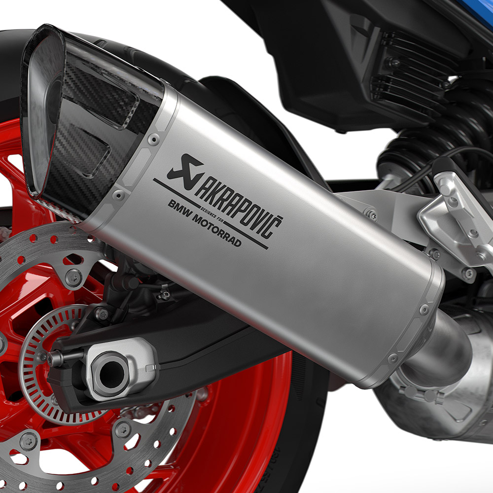 Den dybe, spændende lyd fra sportslyddæmperen med titanium-hus giver et imponerende soundtrack til dine ture. Lyddæmperen, som fås som valgfrit tilbehør, er en visuel repræsentation af dine høje standarder. Desuden kan den lille vægtreduktion mærkes i køredynamikken.