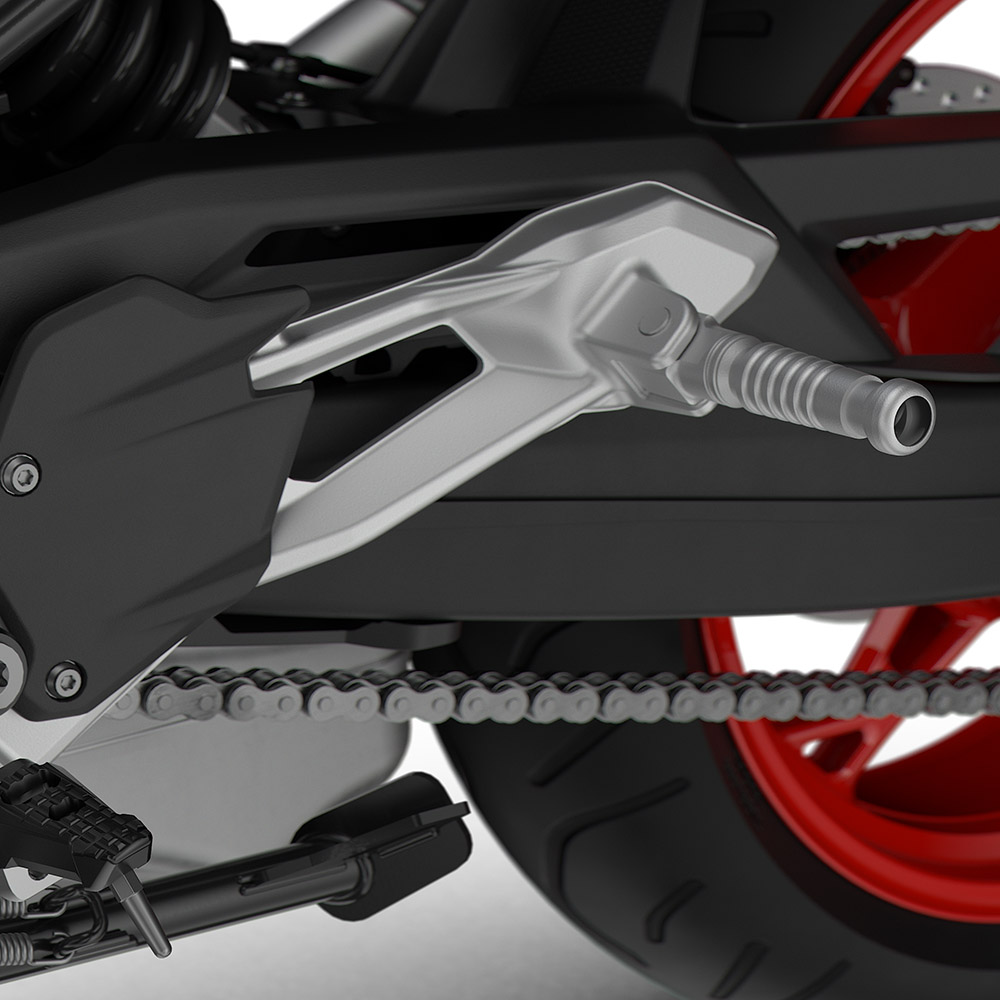 Selv ergonomien er designet med sporty langdistancepræstationer i tankerne. Den oprejste siddeposition øger din udholdenhed, og fodstøtten og siddestillingen for din passager betyder, at de også kan nyde hver kilometer. Den justérbare op og ned affjedrede gaffel giver rytteren mulighed for at konfigurere fjederforspændingen for forbedret kontrol under kompression, enten med bagage eller en passager ombord.