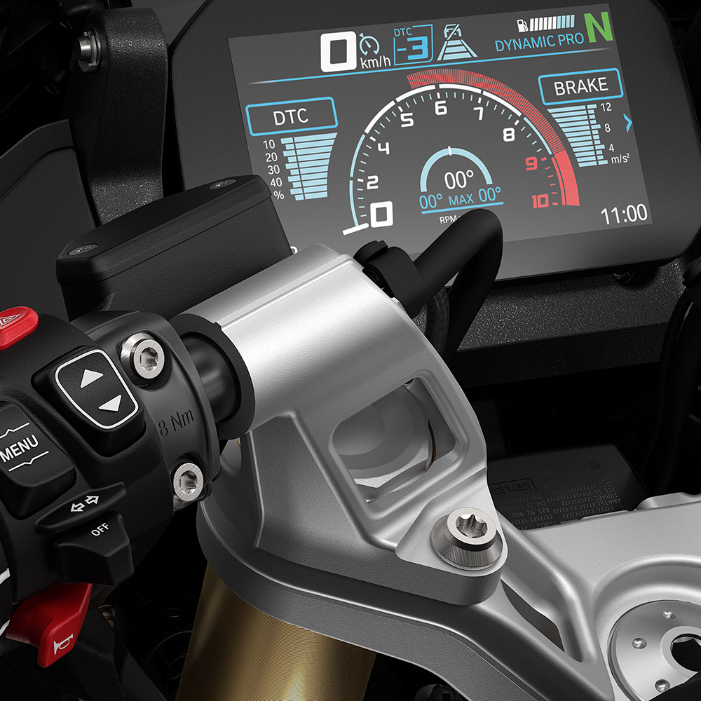 Mere sjov, mere kontrol. Den automatiserede gearskiftassistent (ASA) og gearskiftassistent Pro giver mulighed for hurtige gearskift uden at skulle røre koblingen. Med køretilstandene Pro og DSA kan din motorcykel tilpasse sig enhver situation på vejen. Sportbremsen er også en pålidelig hjælp under alle omstændigheder.