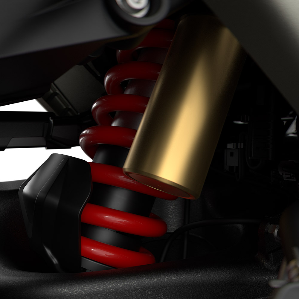 Den buff totalpakke: Denne atlet er klar til høje hastigheder og adrenalinfyldte maratonture. Den slanke front med stildefinerende kåbe, aggressivt udseende forlygter og den 2-farvede forrude – alt er designet til høj ydeevne. Du kan nyde bokserens kraft på det dynamisk formede sæde. Start din sporty tur og nyd lyden fra den dobbelte bagdæmper på tværs af hver kilometer.
