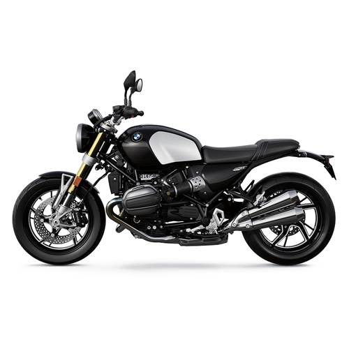 Forhjulsdæksel, airboxdæksel, motorcykelsæde: farven sort løber igennem og tager R 12 nineT til næste niveau cool. Tanken i sort med aluminiumslook sætter en spændende accent.