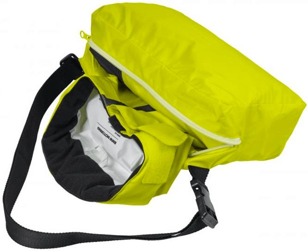 Regn heldragten har en stor inderbrystlomme, som er tilgængelig gennem en åbning i labyrintsystemet.