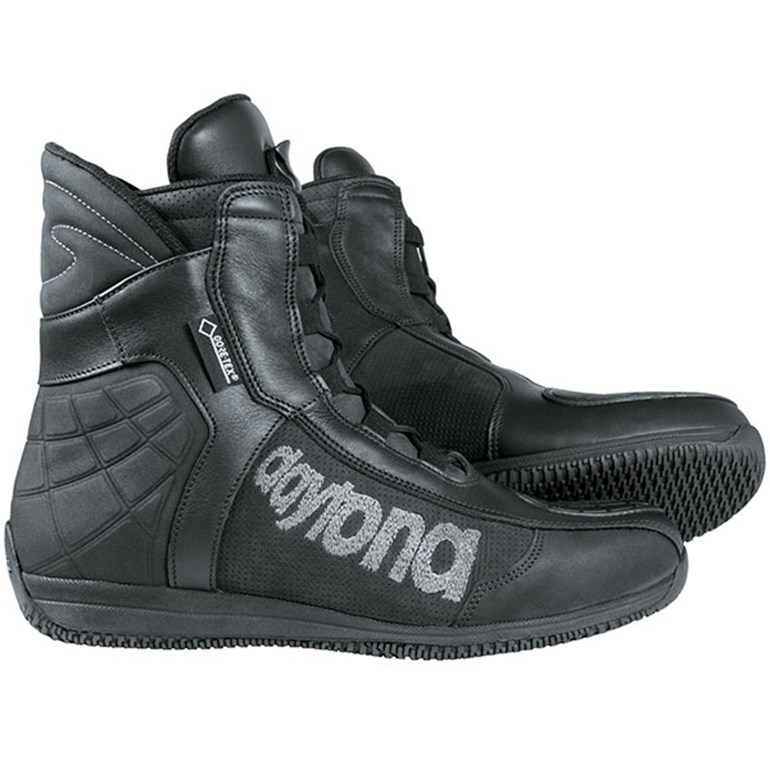 Korte GORE-TEX Daytona støvler, lavede af en blanding af glat læder, perforeret læder og nubuck. Støvlerne har elastisk, behagelig blød ankel kant samt s nørrebånd med quick release. Støvlerne er udstyrede med en natomisk formede klimatiske indersål og skridsikre Wedge gummisål og galvaniseret stålindlæg.
