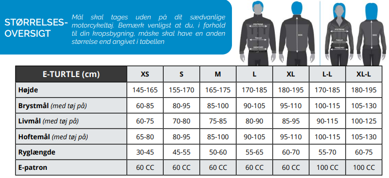 e-Turtle er vores mest populære airbag. Den foretrækkes af mange grundet sin allround anvendelse. Du bemærker nærmest ikke, at du har den på.