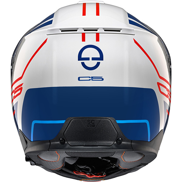 Schubert C5 hjelmen har, Solvisir, visirhukommelse denne funktion bibeholder visiret i samme position efter åbning og lukning af hjelmkæben, sikkerhedslås så det er muligt at køre med kæbestykket åbent.