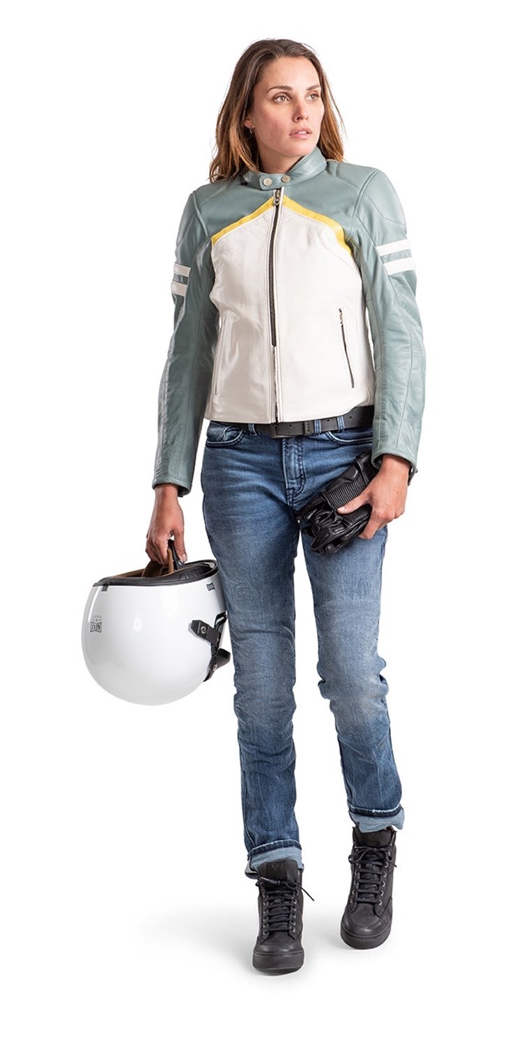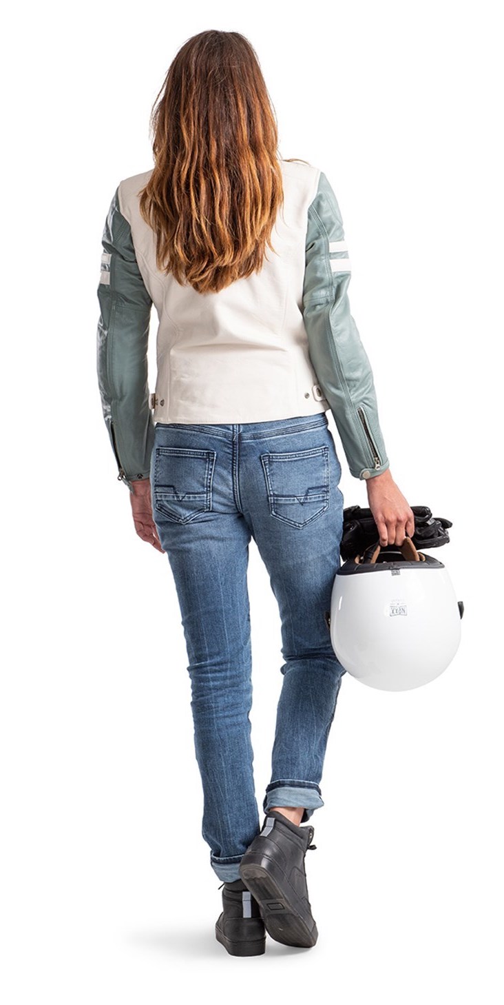 Denne stilfulde læderjakke er ikke kun ekstrem komfortabel - den giver dig også beskyttelse. Takket være SEESMART TM skuldre- og albuebeskyttere, er du udstyret med CE-klassificeret beskyttelse (uden at det fjerner den feminine silhuet) Det betyder så, at du kan gå rundt i en 100% motorcykeljakke og stadig se brandlækker ud. Det aftagelige, ærmeløse termiske for gør, at du kan bruge den i flere sæsoner. Til dig, der er på udkig efter ekstra sikkerhed, er Meridian jakken forberedt til REV'ITs SEESOFT TM CE-niveau 2 rygbeskyttelsesindsats.