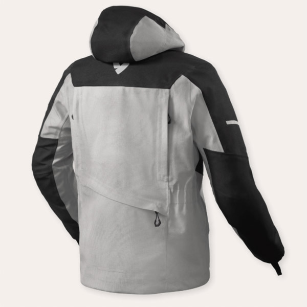Rev'its tanke bag Tectonic H2O jakken er, at de tog nogle af deres bedste ADV-terr æ n-ideer, sammen med dem fra deres ADV-touring-ende af skalaen, og blandede dem for at skabe en jakke kendt som Tectonic H2O. Et smart lagdelingssystem, der giver MC-folket mulighed for at nyde fuld luftstr ø mn å r det er n ø dvendigt, men ogs å vandt æ tning og ån dbarhed, hvis vejret skulle blive værre. Tectonic H2O's ydre ”skal” er konstrueret af et holdbart 3L polyester Ripstop sammen med 3L hydratex vandtætning, for at holde regnen ude, når det begynder at vælte. Den er derefter kombineret med en indre PWR|Shell mesh-jakke for at tillade luft at strømme mod kroppen på de dage, hvor du har mest brug for det. Lyn dem sammen og tilføj dit eget yndlingsbase (eller mellemlag), og det er en opskrift på succes. Det er vigtigt at bemærke, at den vandtætte jakke ikke har kombineret rustning, den er dog CE klasse B-certificeret, og den er ikke beregnet til at blive født som et selvstændigt stykke, når man kører, men fungerer som det vandtætte lag over den AA sikkerhedsklassificerede mesh. jakke. Smarte løsninger som ventilation på den ydre skal findes inde i armene med et panel langs midten foran, og udluftningsåbninger bagved.