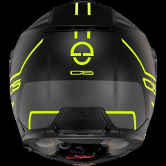 Schubert C5 hjelmen har, Solvisir, visirhukommelse denne funktion bibeholder visiret i samme position efter åbning og lukning af hjelmkæben, sikkerhedslås så det er muligt at køre med kæbestykket åbent.