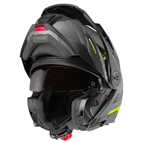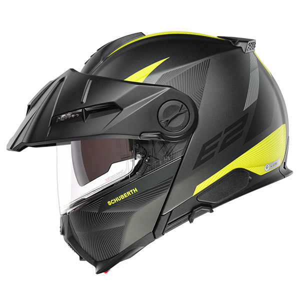 Schuberth E2 er anden generation af Schuberts adventure-hjelme og den anden hjelm i Schuberths serie med P/J-dobbelt homologering og opfylder den nye ECE 22.06-standard . SCHUBERTH E2 er den perfekte blanding mellem komforten i den berømte Flip Up “C”-serie og det aggressive udseende og følelse af en offroad-hjelm. Så forvent et lavt støjniveau, som altid!