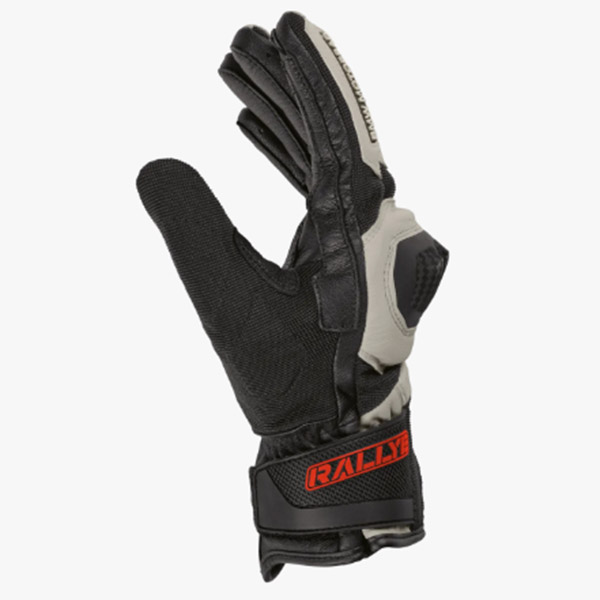 De vindtætte og vandtætte GS Rallye GORE-TEX håndsker er forudbestemt til off-road brug. Håndfladen lavet af gedeskind giver det bedst mulige greb. En stor knoskal lavet af hård plast foret med stødabsorberende skum beskytter mod stød.